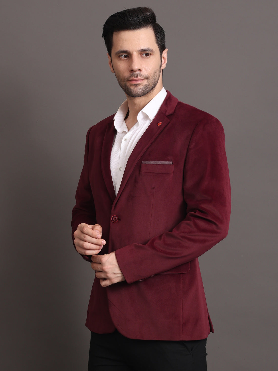 Men's Maroon Solid Velvet Tailored Fit Blazer