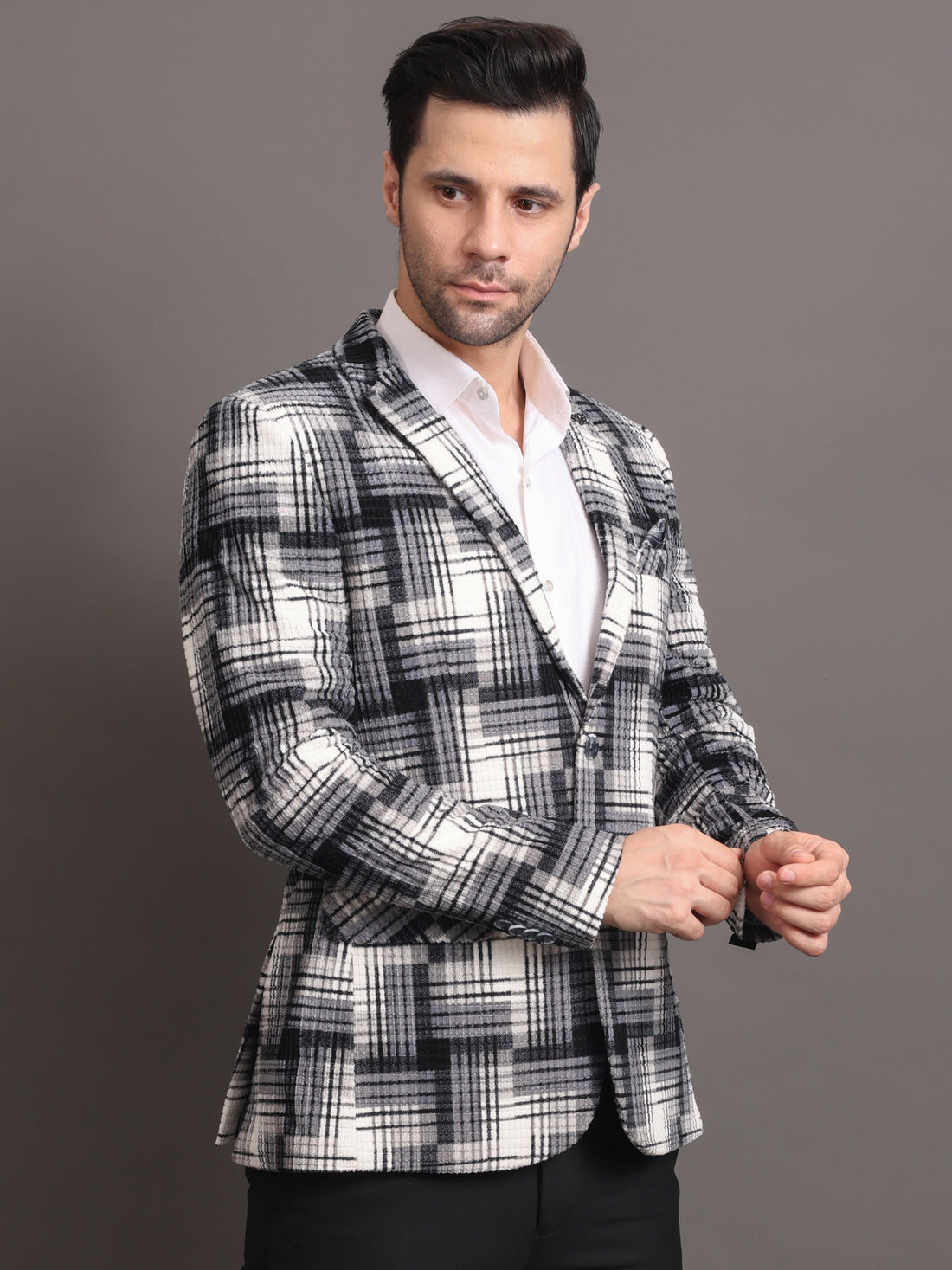 Men's White And Black Tweed Checked Tailored Fit Formal Blazer