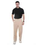 Men Beige Solid Pleats Korean Trousers