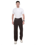 Men Brown Solid Pleats Korean Trousers