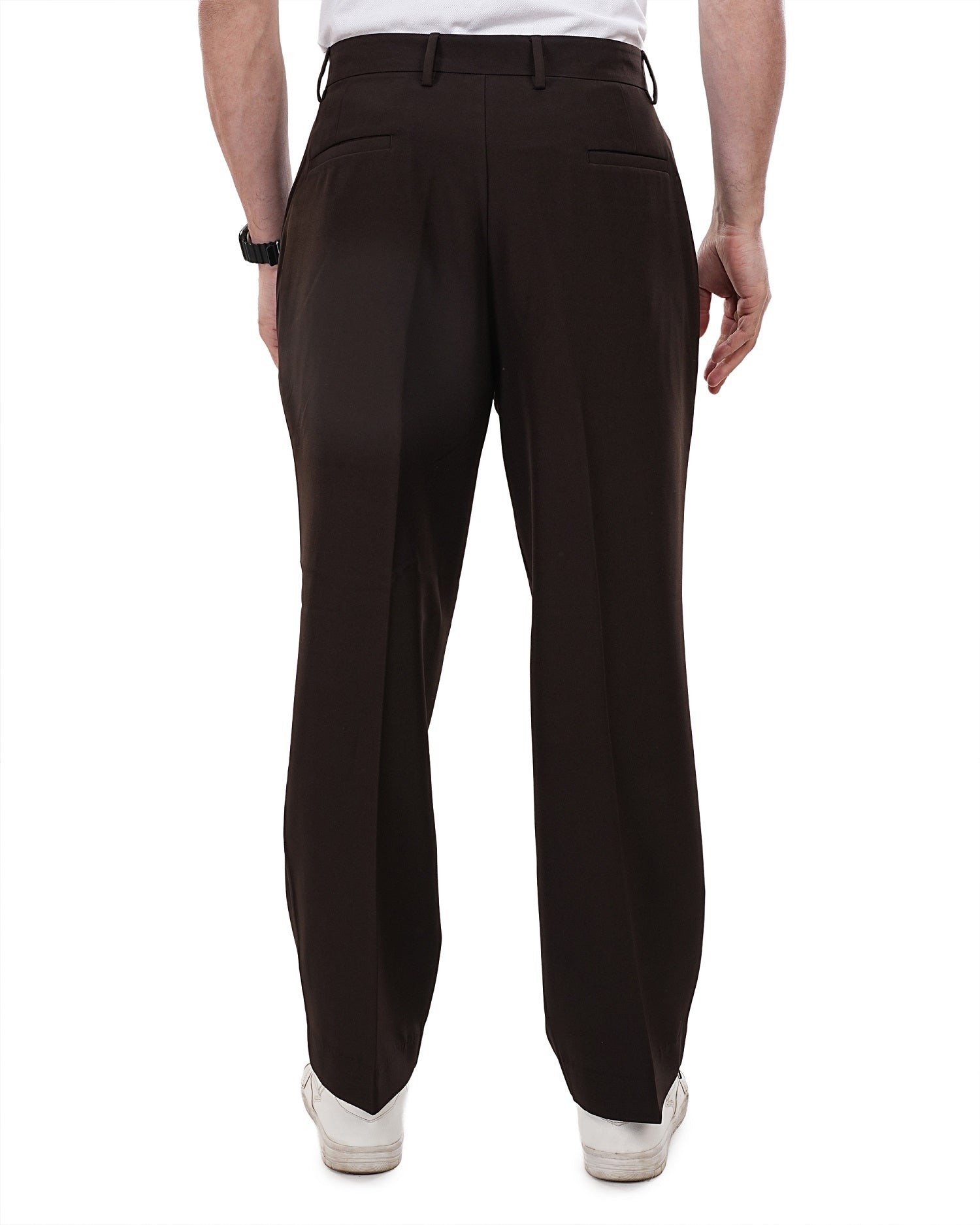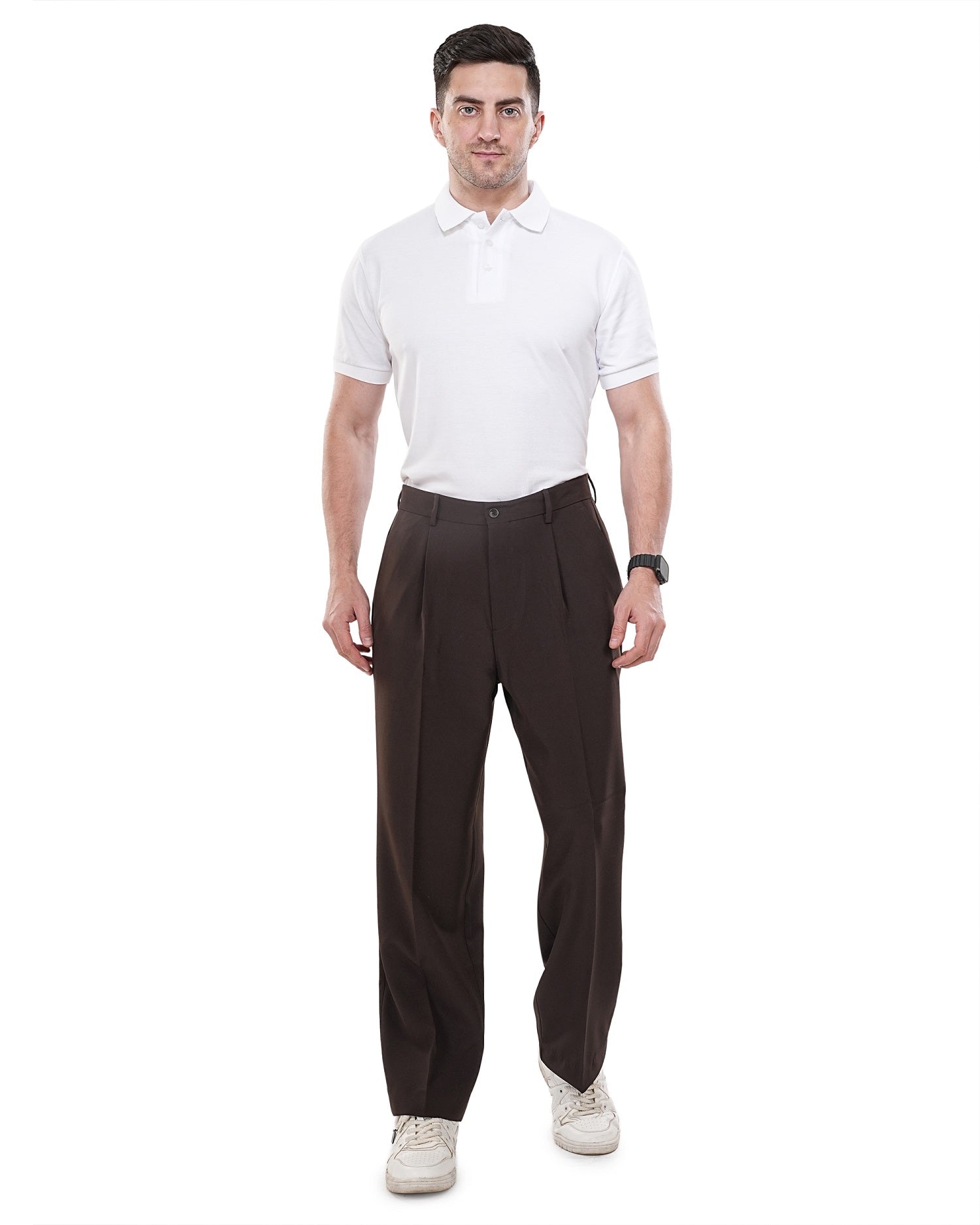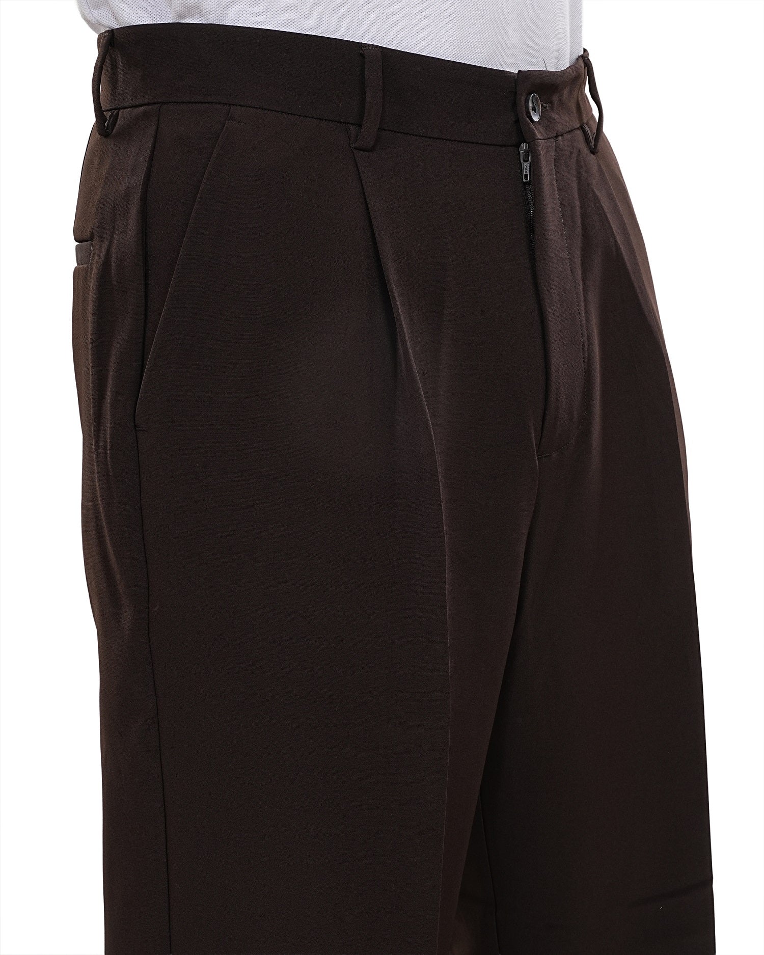 Men Brown Solid Mid Rise Pleated Casual Korean Trouser Has a Mid Rise, Front Pleated, Two Back Pocket and Two Side Pocket, Button Closure, Zipper Fly and Banana Crepe Fabric.