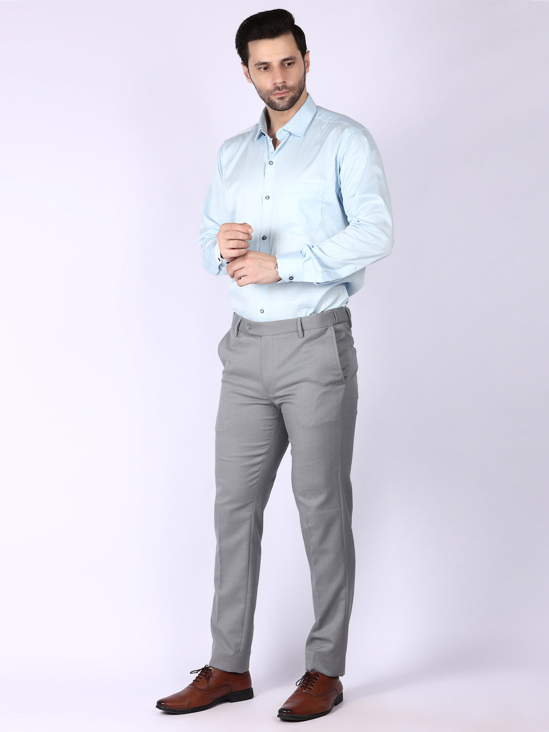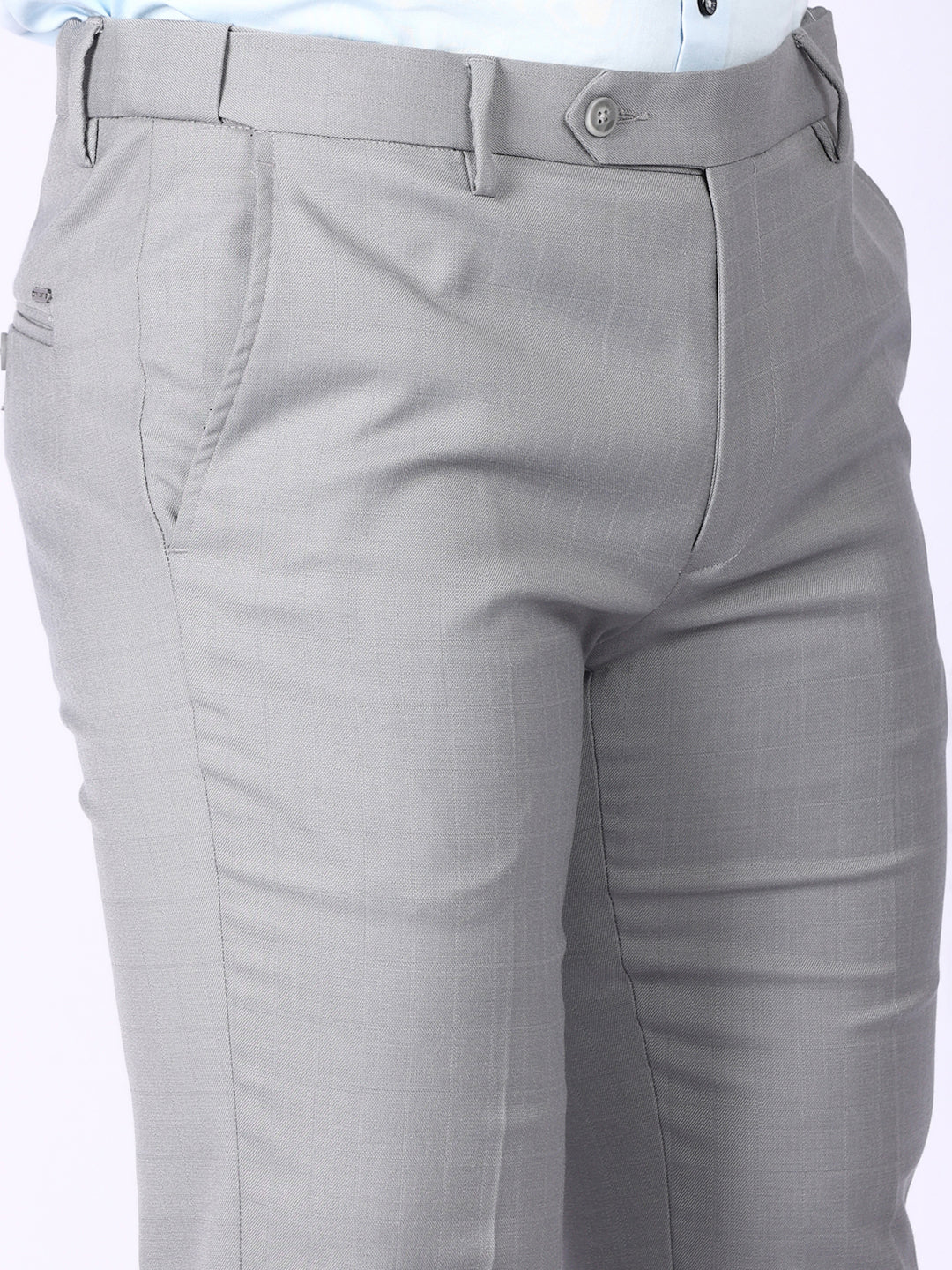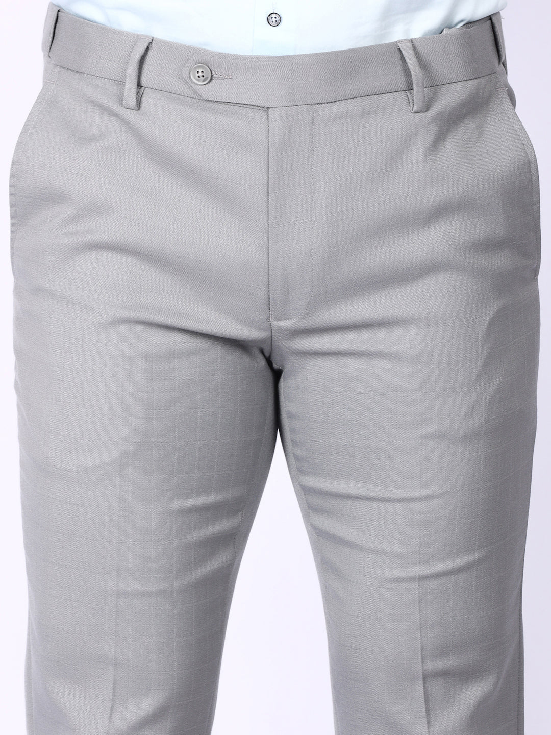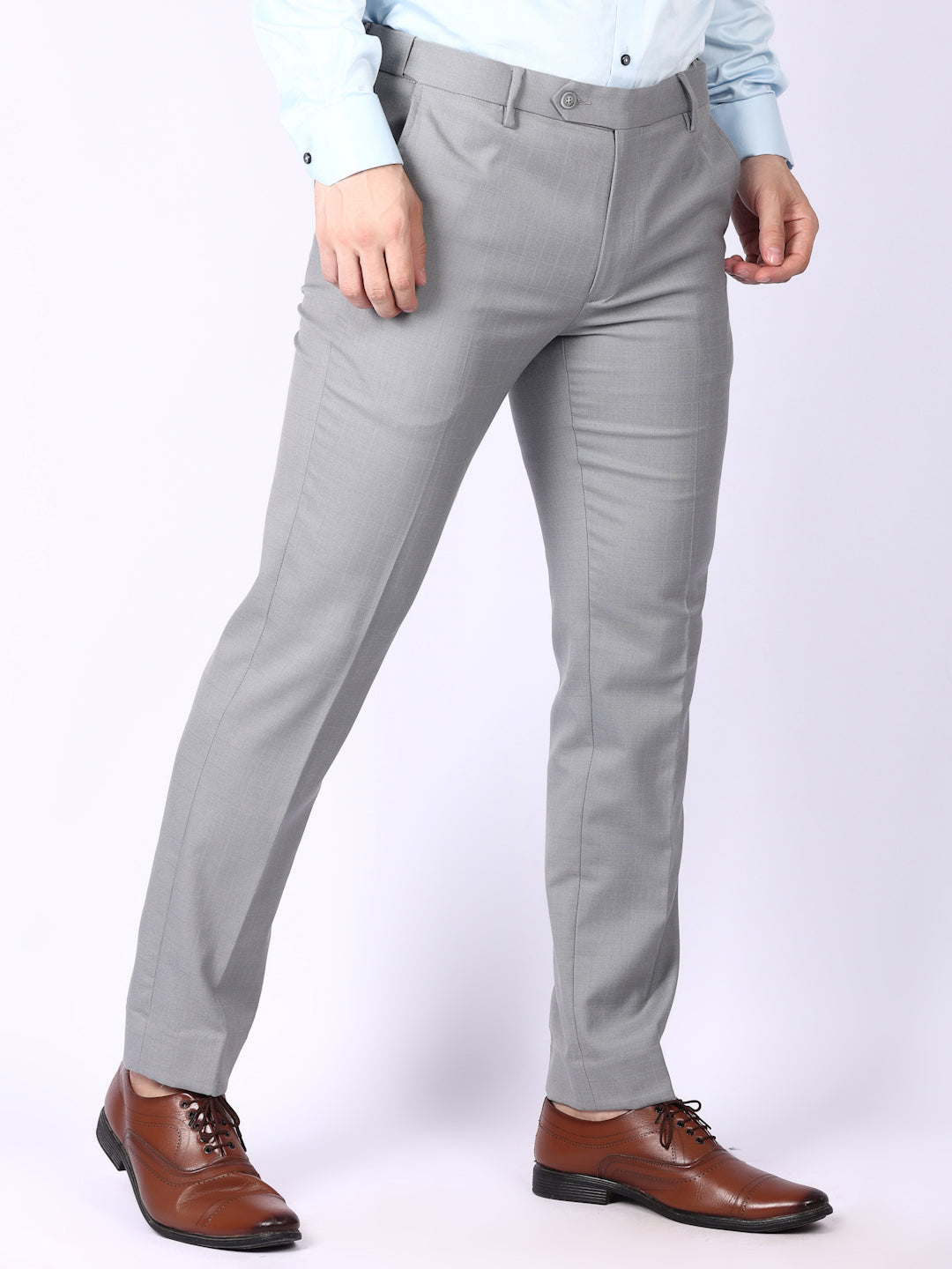 Light Grey Solid Regular Fit Formal Trousers