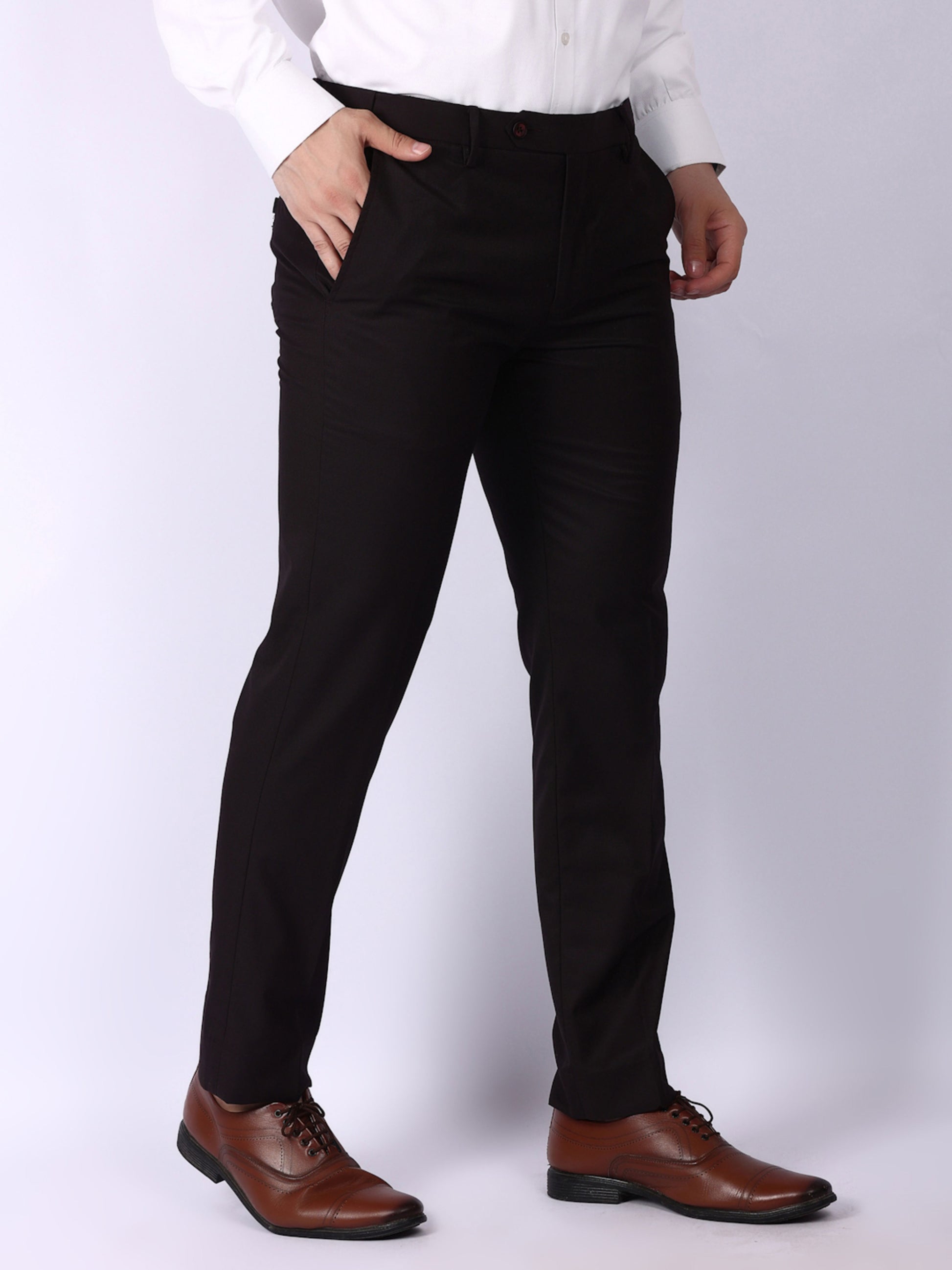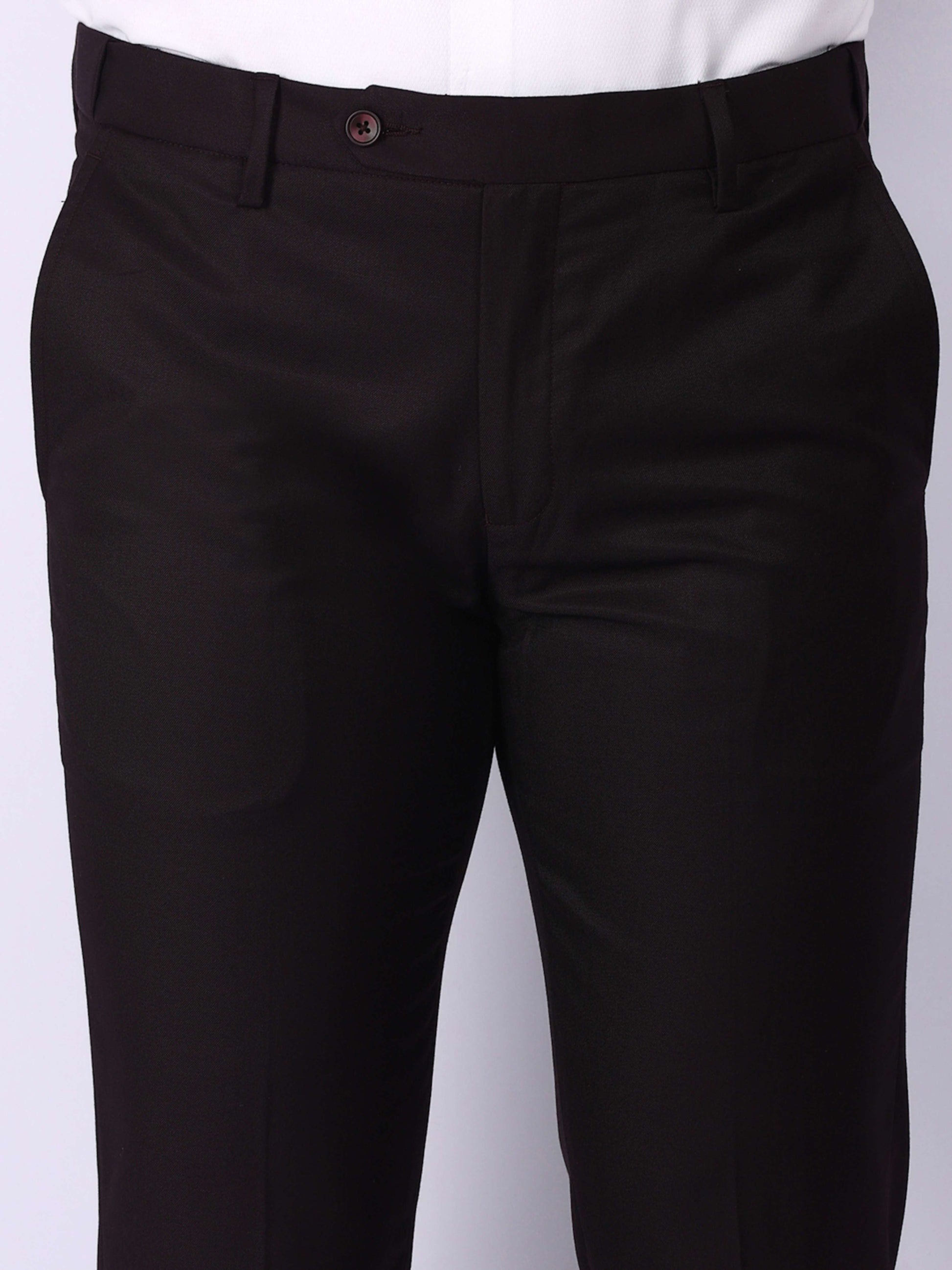 Wine Solid Regular Fit Formal Trousers